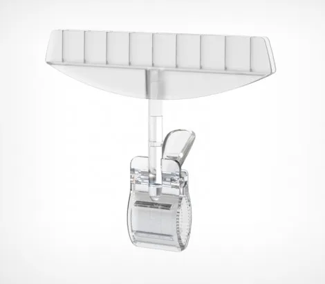ОписаниеДержатель акрилового кармана или плаката из картона, с зажимом-прищепкой для крепления на трубе ( макс Ø 35 мм), товаре, краю полки (макс.толщина 40 мм). Ширина 150 или 210 мм. Толщина вставки – 3 мм.