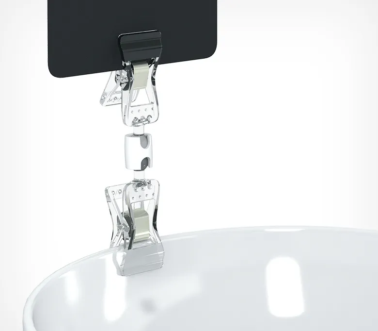 ОписаниеУниверсальный ценникодержатель с прищепками, малый надевается на торец полки, край коробки, корзины, блюда, толщиной до 10 мм.