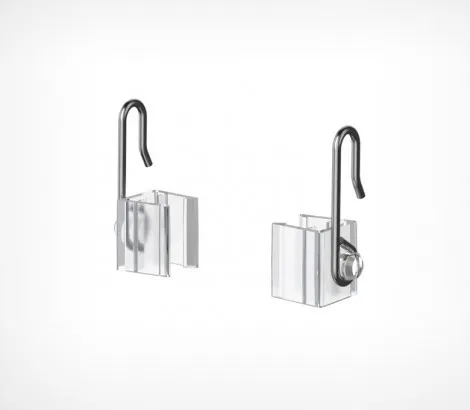 ОписаниеКрючок с подвижным основанием для подвешивания пластиковых рамок на подвесных профилях и металлических корзинах для распродаж. Закрепляется с боковой стороны рамки. Для подвешивания одной рамки необходимо два крючка разной ориентации (правый и левый). Основание изготовлено из прозрачного ударопрочного пластика, крючок - из стального прута.
