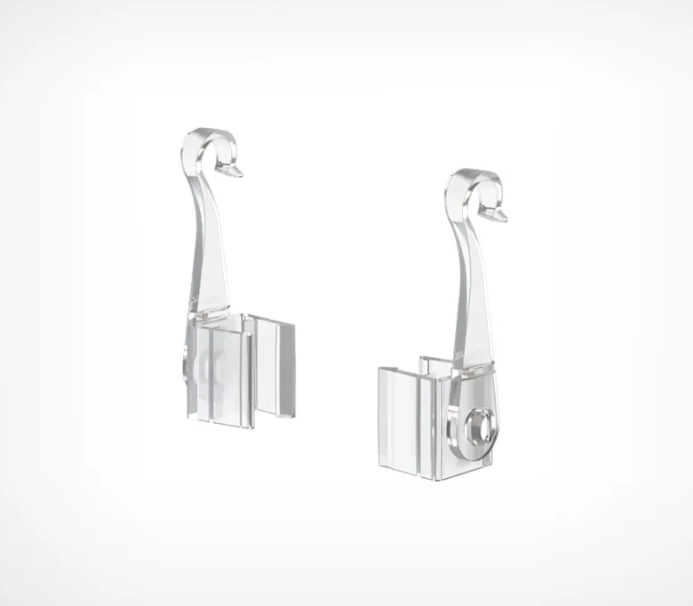 ОписаниеКрючок с подвижным основанием для подвешивания пластиковых рамок на подвесных профилях и металлических покупательских корзинах. Закрепляются с боковой стороны рамки. Для подвешивания одной рамки необходимо два крючка разной ориентации. Изготовлен из прозрачного ударопрочного пластика.