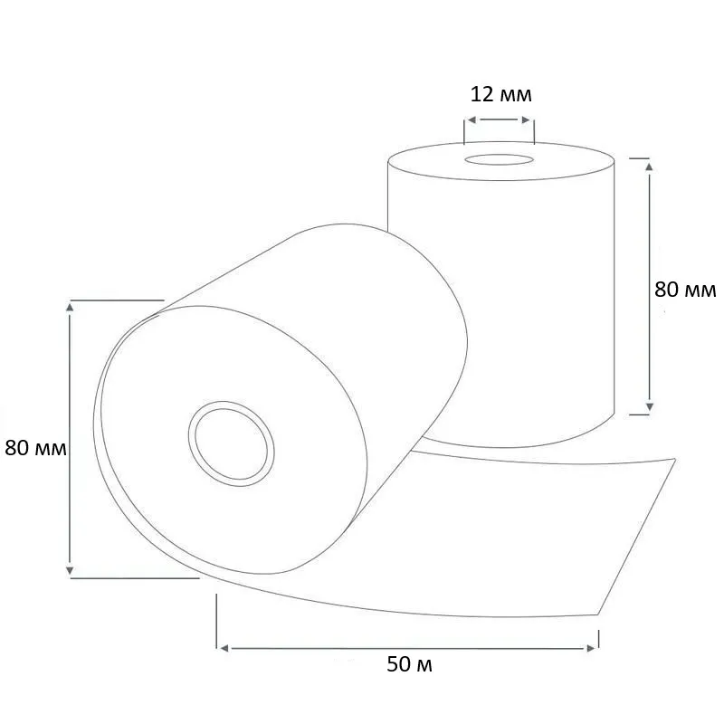 Чековая лента 80х80 термо К ( 72 кол-во в коробке 50 метров в ролике 48 г/м2 плотность )