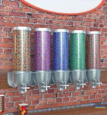 Эстетичная подача товаров в прозрачных диспенсерах привлечет внимание покупателей, поворотное колесо для управления порциями поможет им взять нужное количество продукта и предотвратит его просыпание.