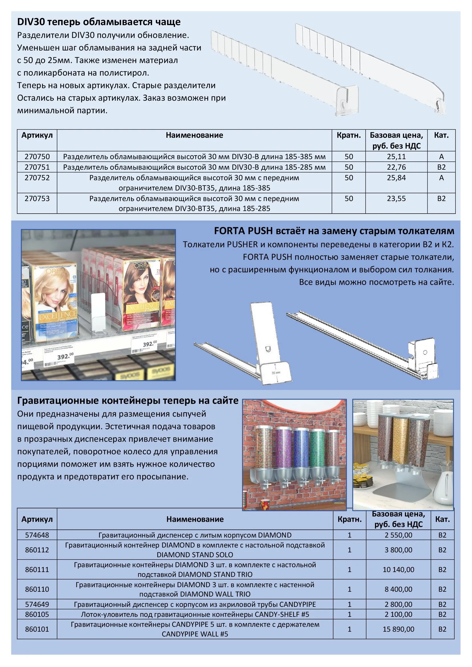| 270751 | Разделитель обламывающийся высотой 30мм DIV30-B, длина 185-285мм | 50 | 22,76 | B2 |