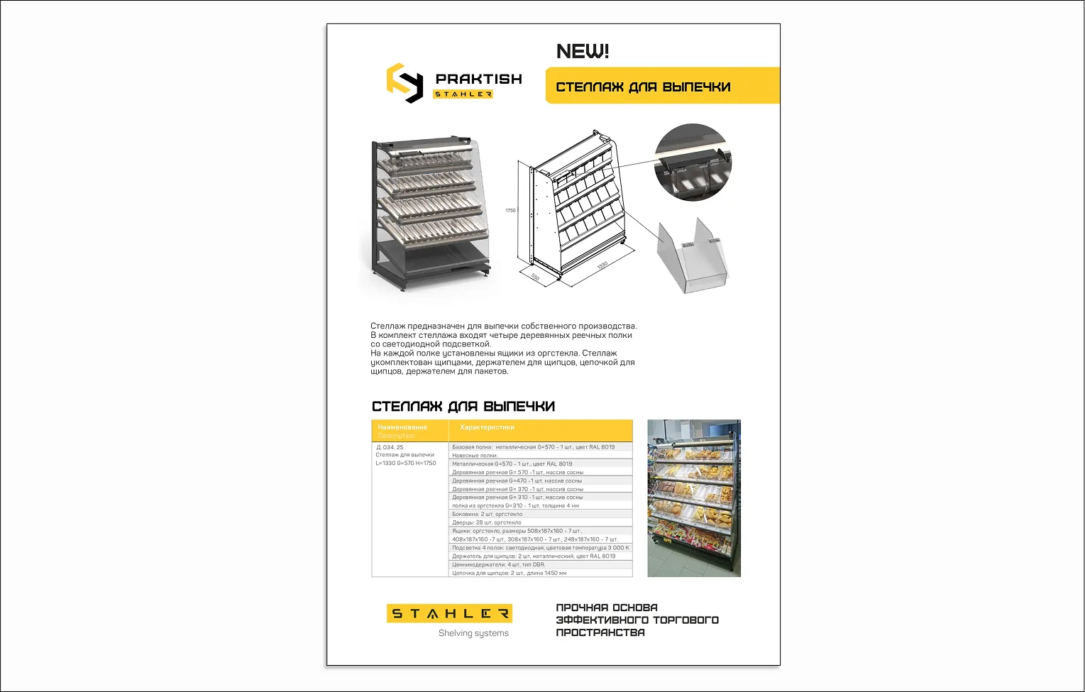 Стеллаж предназначен для выпечки собственного производства.